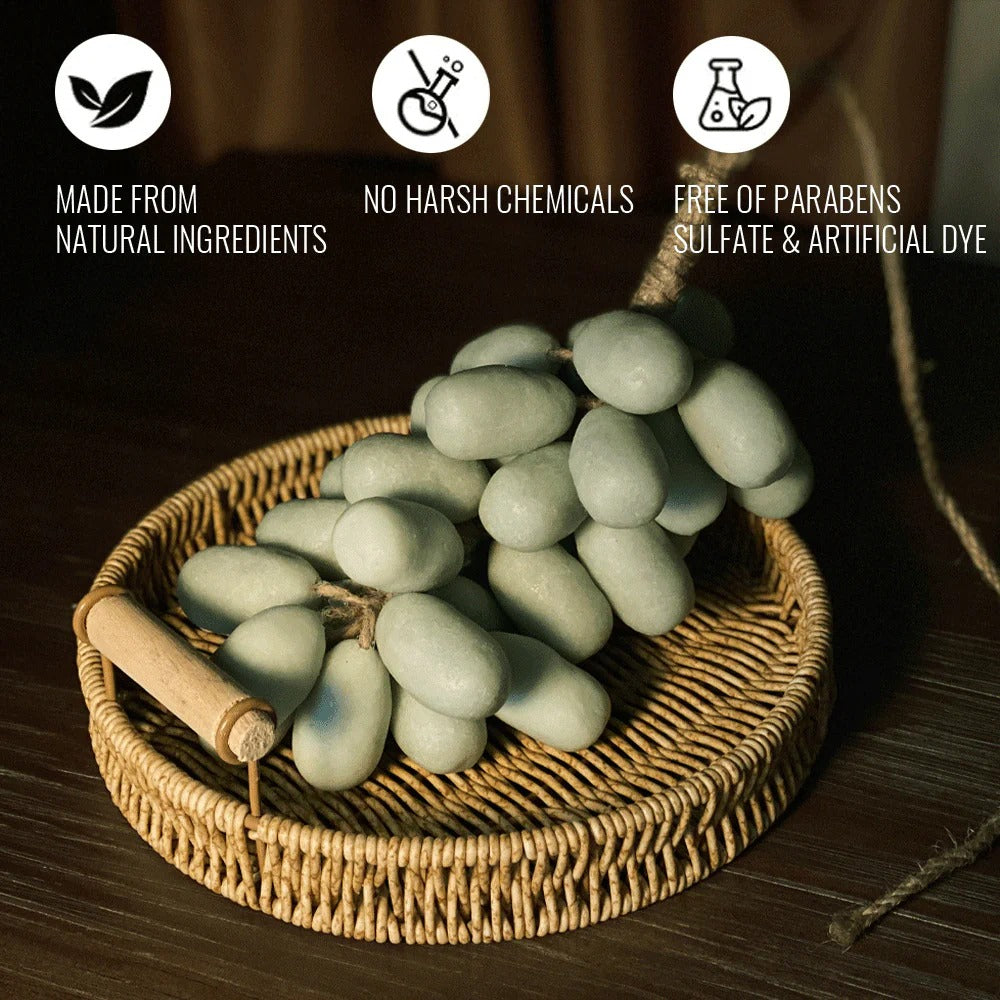 Transform your bathing ritual into an indulgent escape with this exquisite, hand-crafted soap, molded into delightful grape shapes, nourishing your skin and uplifting your senses with 100% organic ingredients.